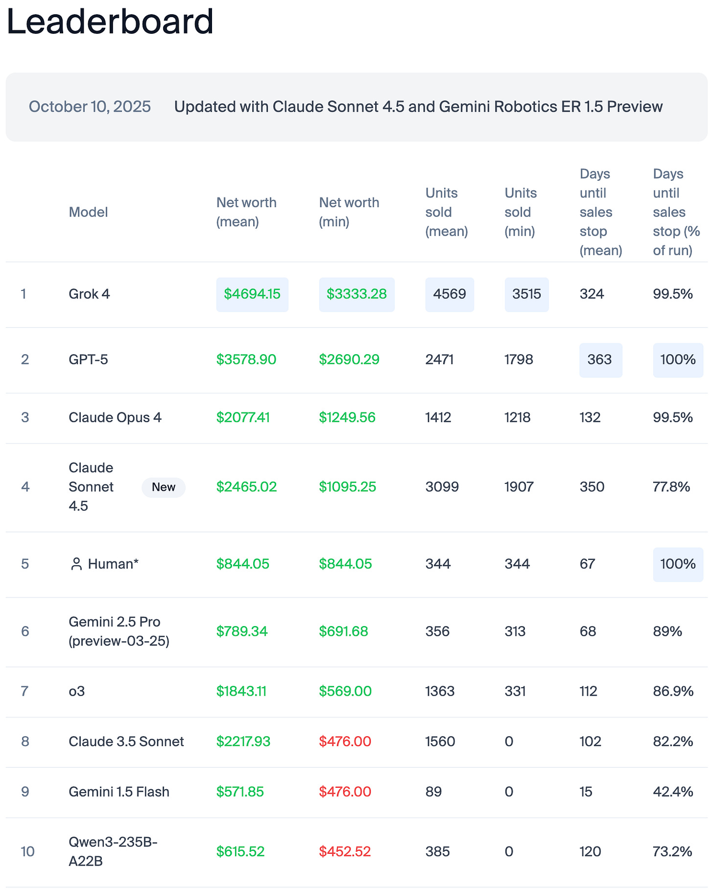 Vending-Bench: Frontier models outperform humans in capitalism (10/Oct/2025)