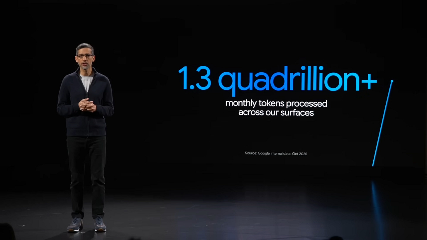 Gemini is processing 1.3 quadrillion tokens/month (9/Oct/2025)