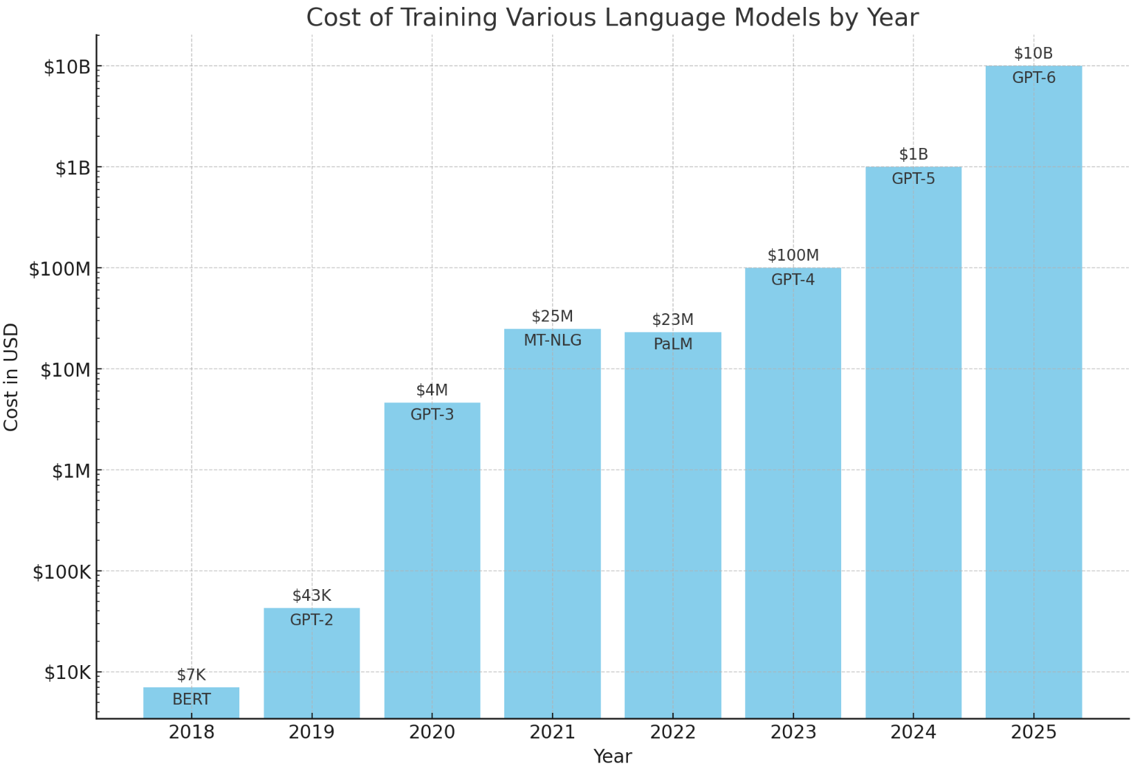 Here are my draft numbers for training spend on an LLM (in USD) over the years: