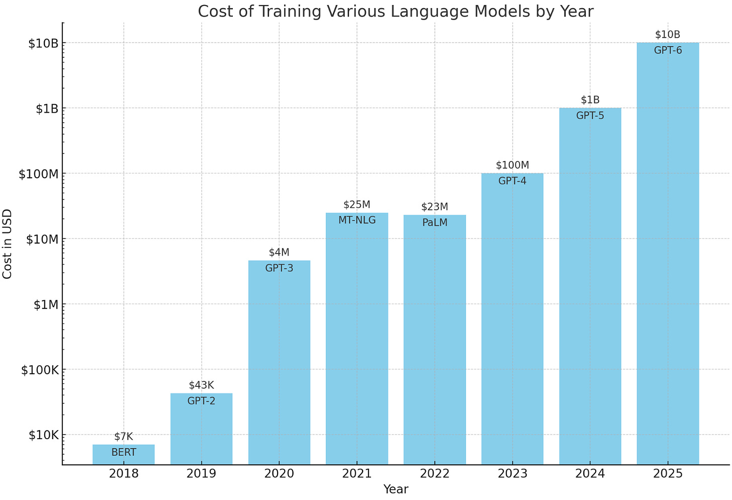 2021: MT-NLG 530B (3 months x 2,000 A100s): $25M