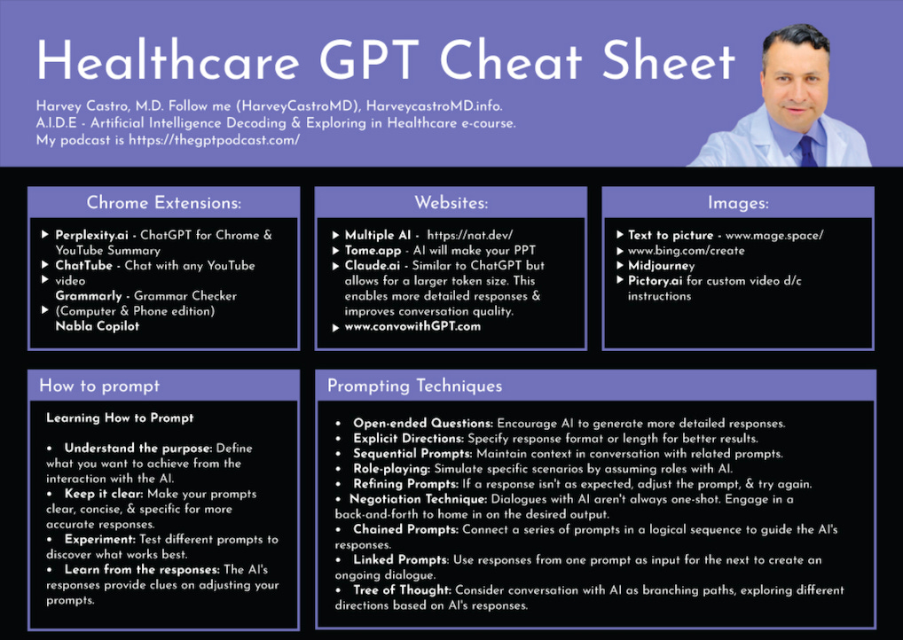 ‘Healthcare GPT Cheat Sheet’ by Harvey Castro MD (Aug/2023)